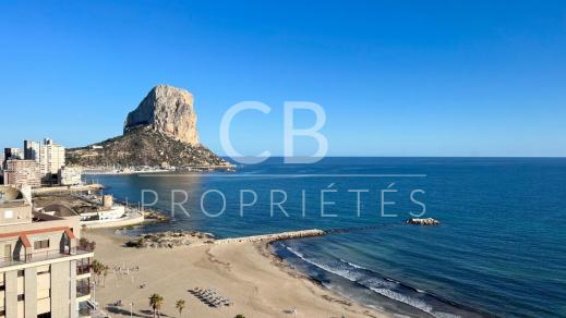 We present this beautiful two-bedroom apartment in the Rubino Building. On the first line of Calpe's Arenal Beach, this property offers stunning views of Calpe Bay, the Baños de la Reina Baths, and the majestic Toix Mountain.