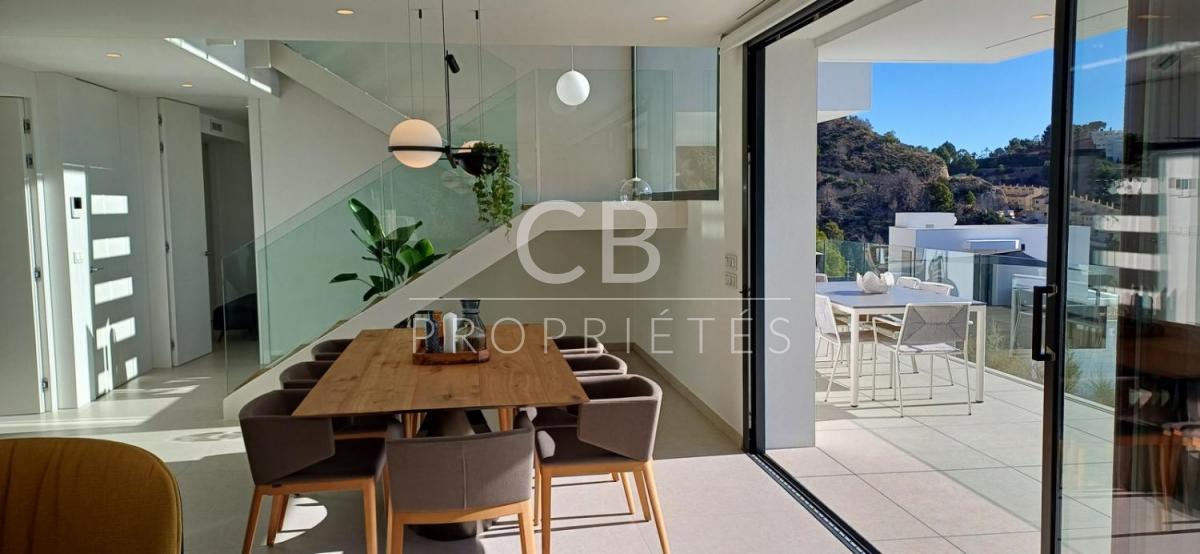 Située dans la municipalité d’Altea, la Villa Senza est une propriété exclusive, prête à être habitée. Entièrement meublée et décorée, elle dispose d’un superbe jardin attenant à la piscine. Cette résidence allie le confort d’une installation immédiate à la sophistication d’un design moderne et fonctionnel. Elle offre un équilibre parfait entre intimité, paysage et proximité des services d’Altea.
