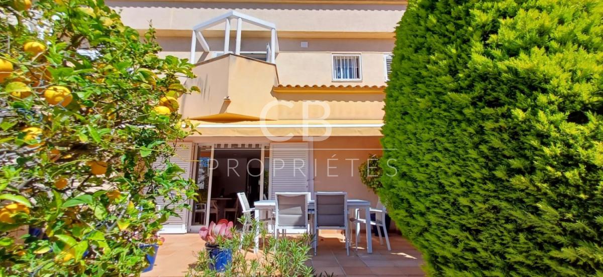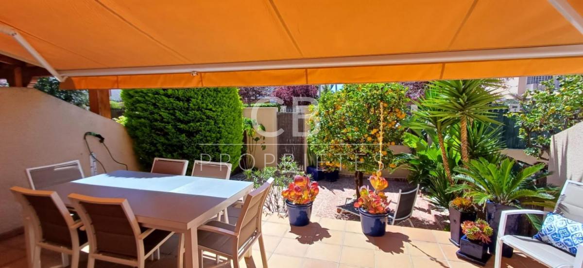 Cette maison mitoyenne de 4 chambres et 3 salles de bains se situe dans une jolie résidence à 50 mètres du Lycée Français d'Alicante. Le quartier, particulièrement résidentiel, bénéficie également de la proximité d'un petit centre commercial. L'accès à la plage se fait en 10 minutes à pied. Le tram dessert Alicante en 25 minutes.